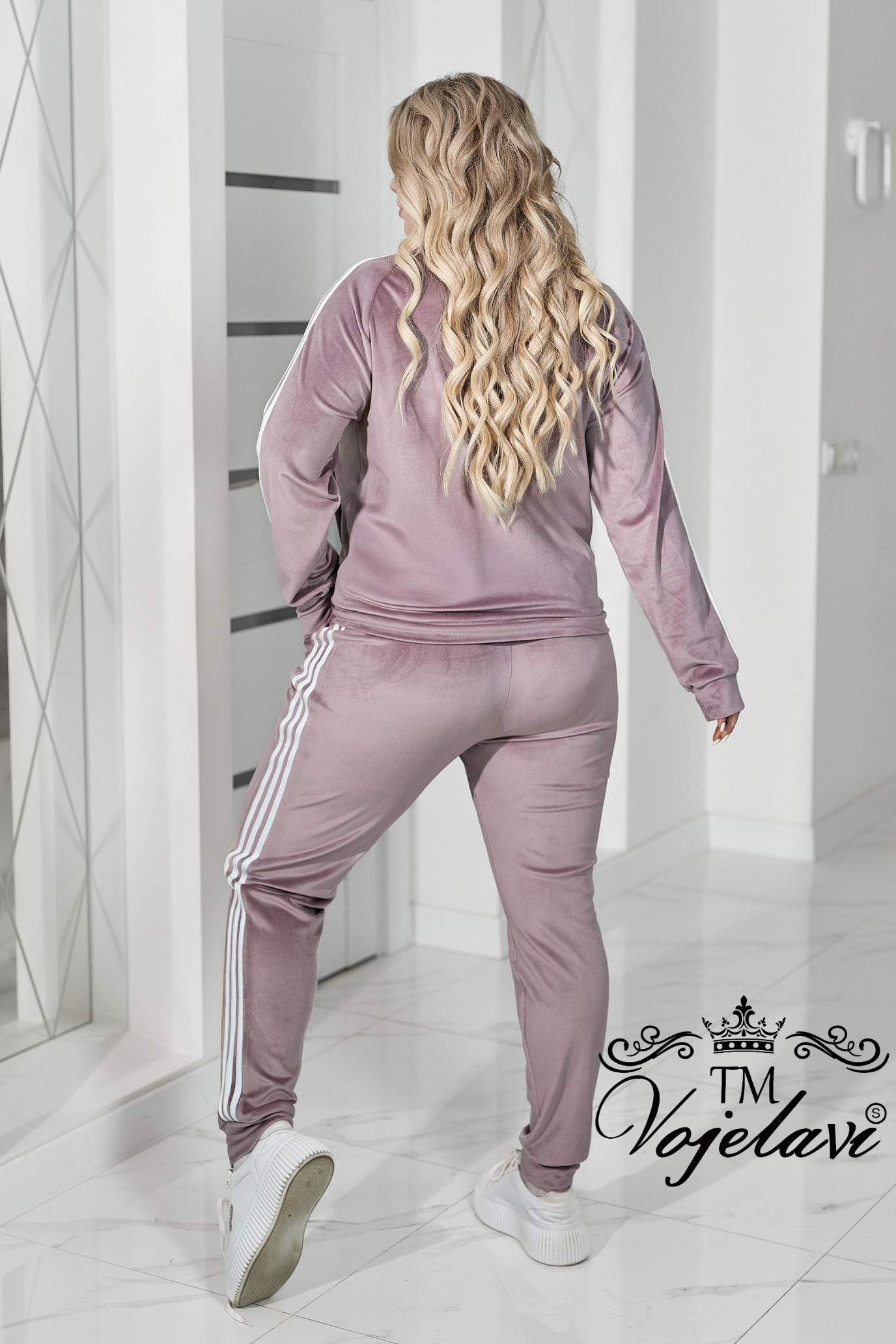 Комфортний та сучасний костюм із м'якого велюру гарної якості. Тканина приємна до тіла, гарно виглядає та чудово тримає форму.