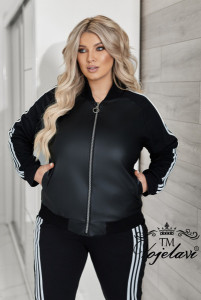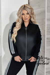 Сучасний та комфортний костюм із тканини двухнитка гарної якості в поєднанні з еко шкірою. Тканина приємна до тіла, добре тримає форму та виглядає дуже ефектно.