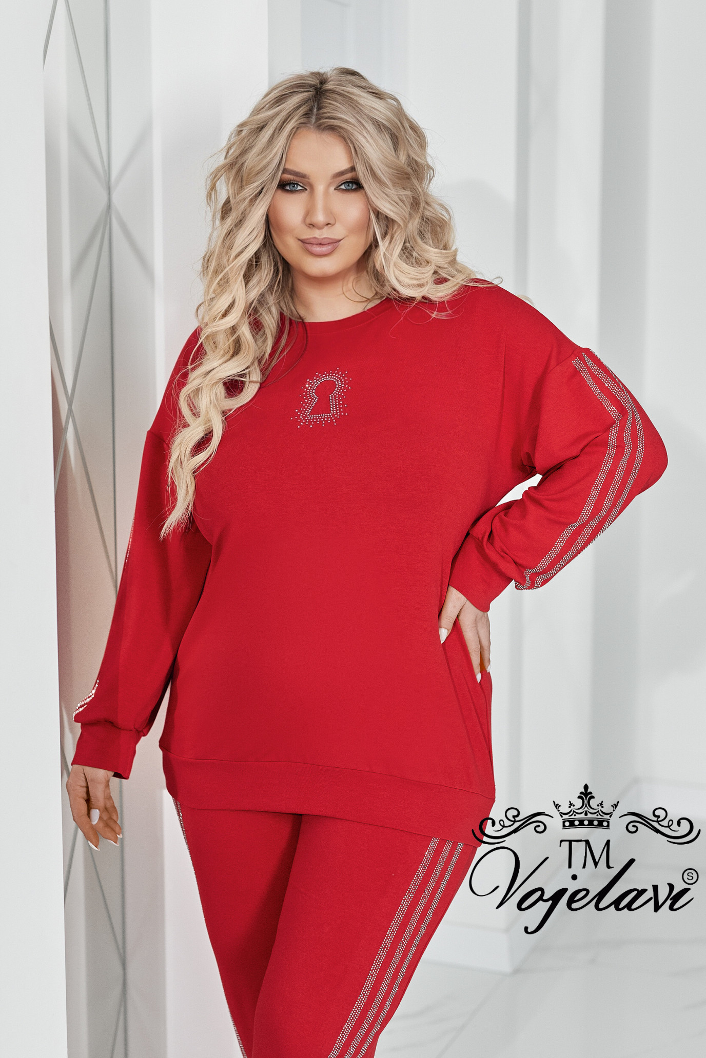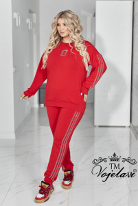Комфортний та ефектний костюм із двухнитки чудової якості, прикрашений лампасами та візерунком " замок" зі страз.