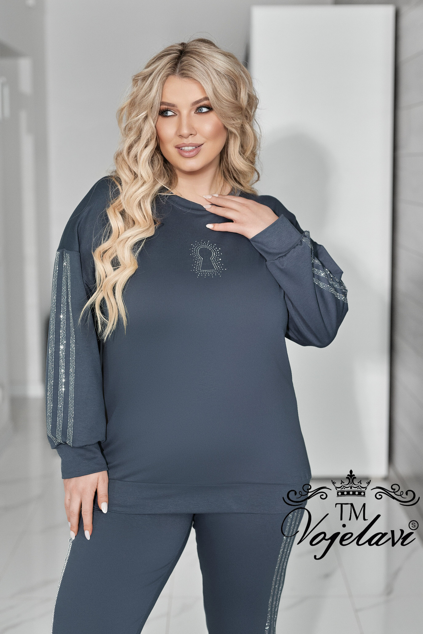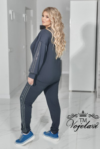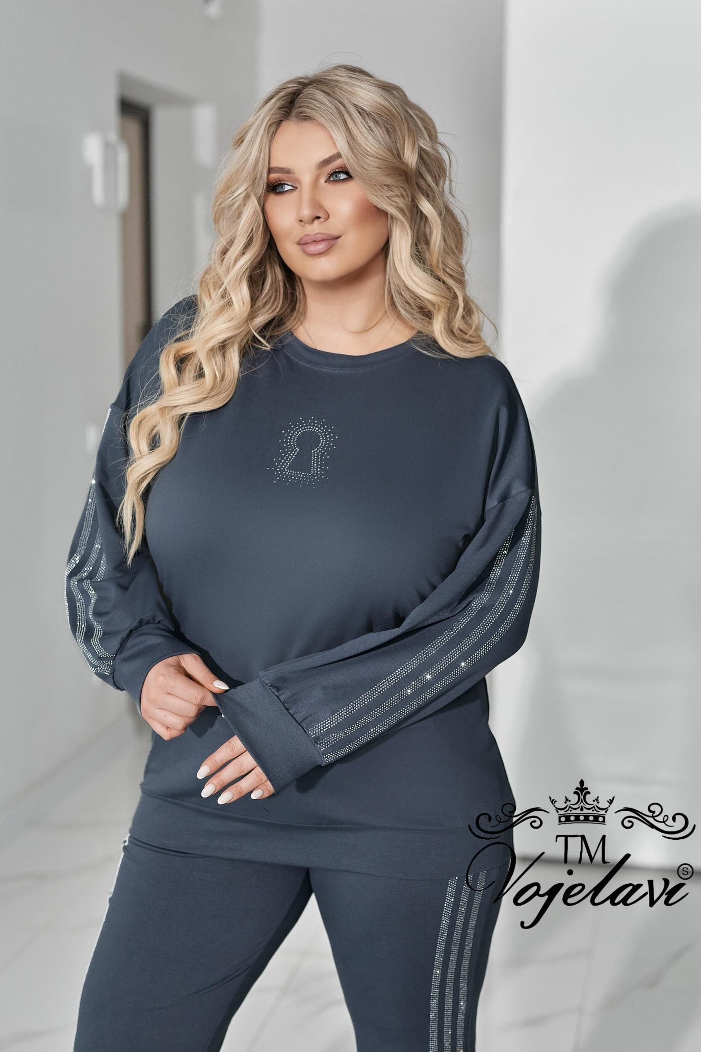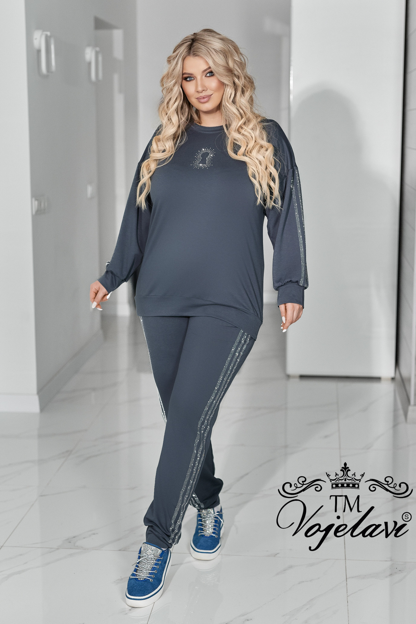Комфортний та ефектний костюм із двухнитки чудової якості, прикрашений лампасами та візерунком " замок" зі страз.
