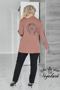Піджак вільного крою, з класичним відкладним коміром, застібається на ґудзики.
