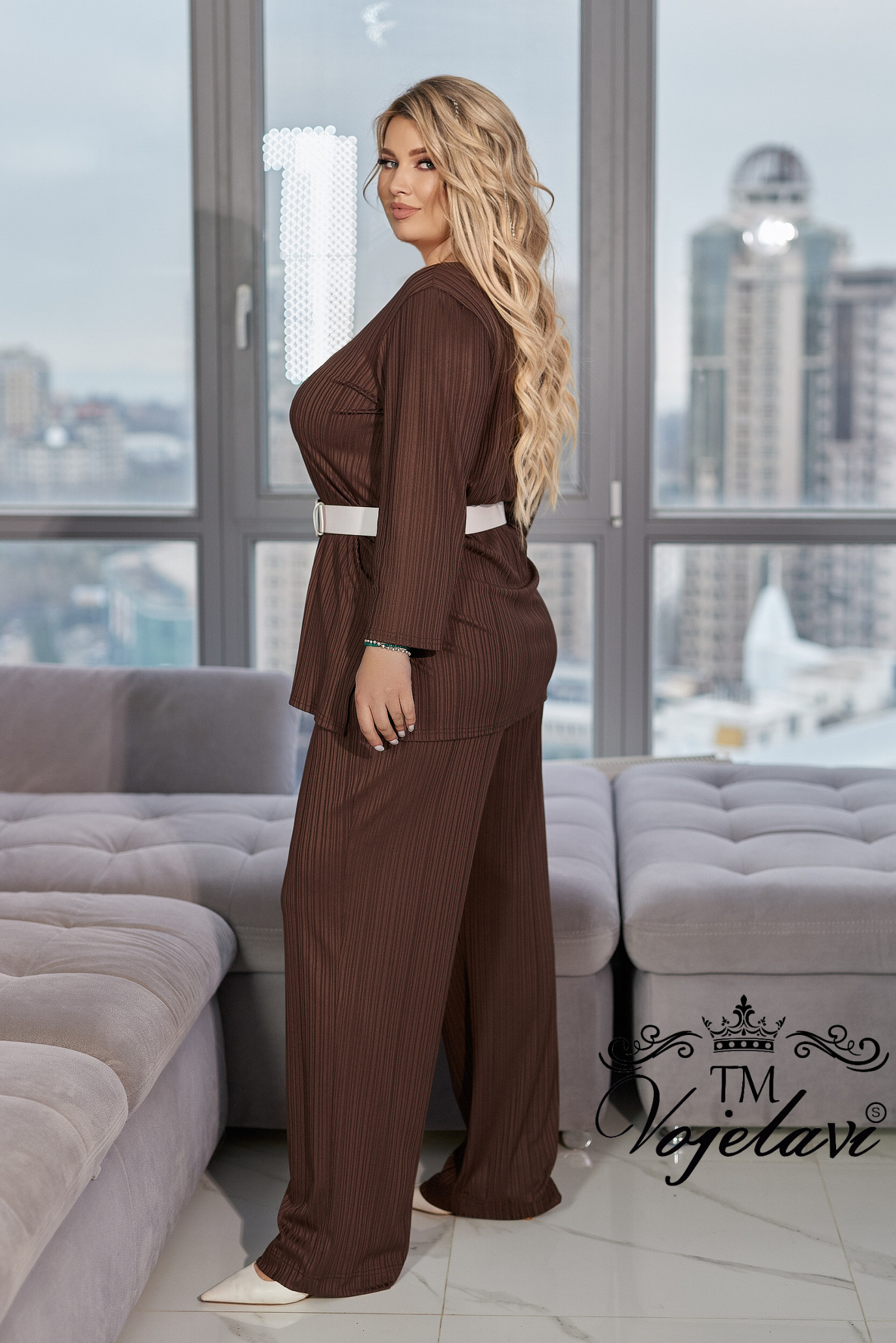 Стильний і комфортний костюм, який гарно сідає по фігурі та дарує легкість у русі. Подовжена кофтинка з боковими розрізами виглядає сучасно та візуально витягує силует.