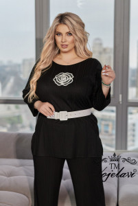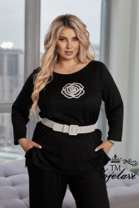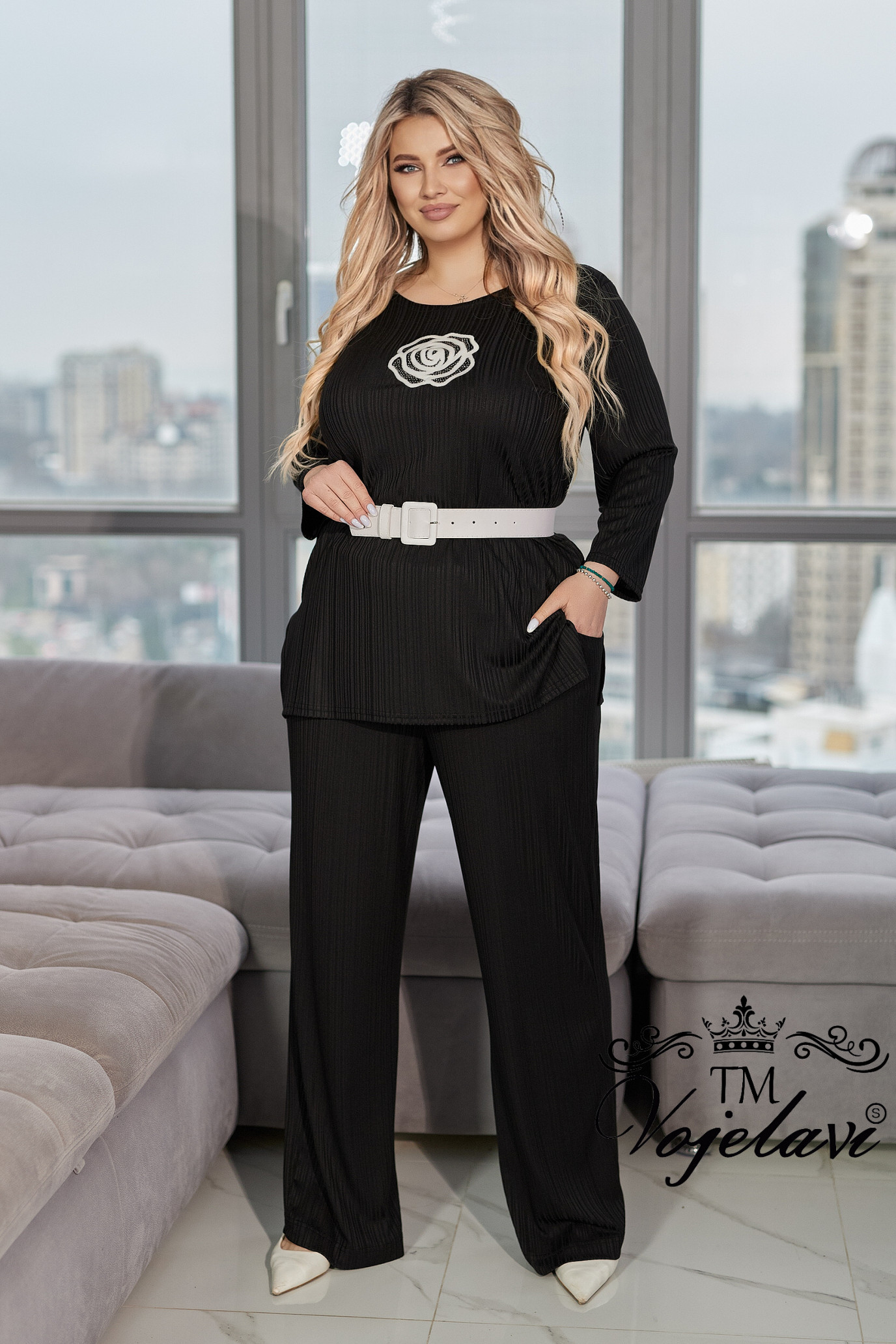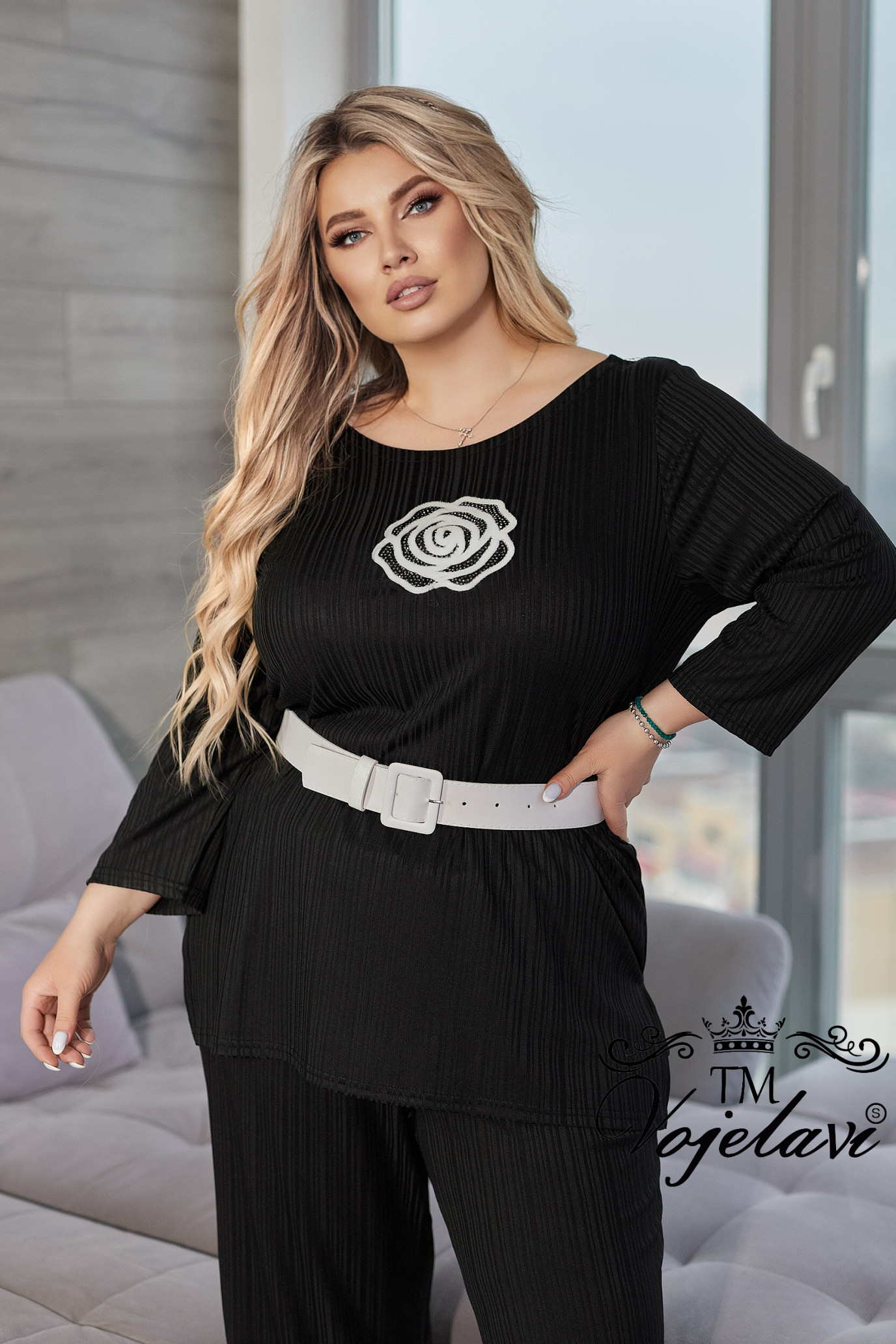 Стильний і комфортний костюм, який гарно сідає по фігурі та дарує легкість у русі. Подовжена кофтинка з боковими розрізами виглядає сучасно та візуально витягує силует.