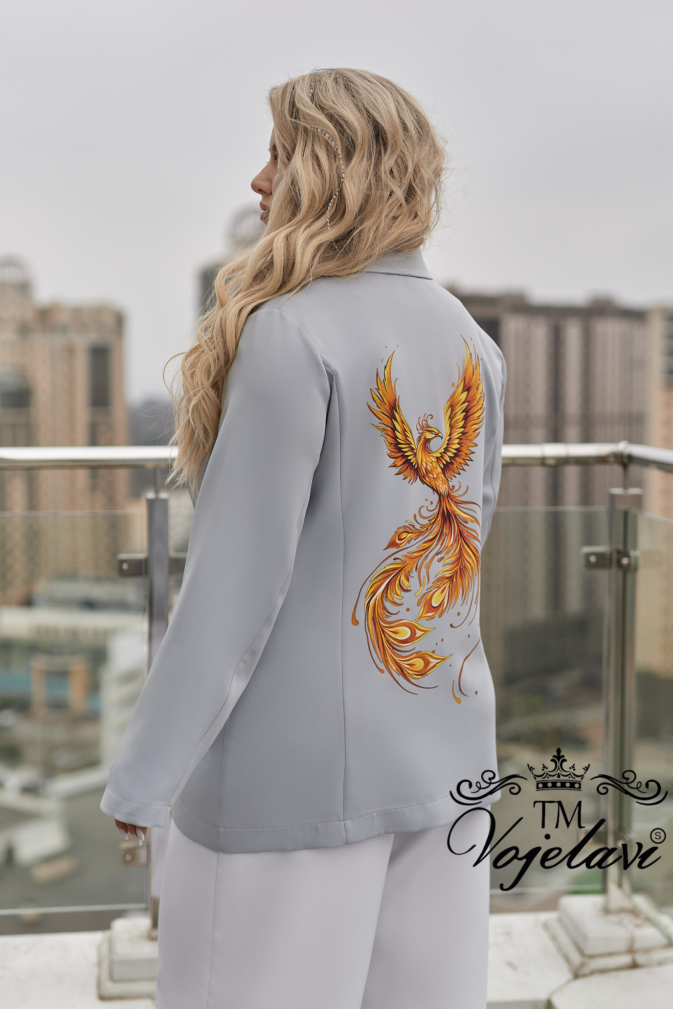 Розкішна апплікація по спинці у вигляді жар-птиці — справжній акцент, який привертає увагу та виглядає дорого.