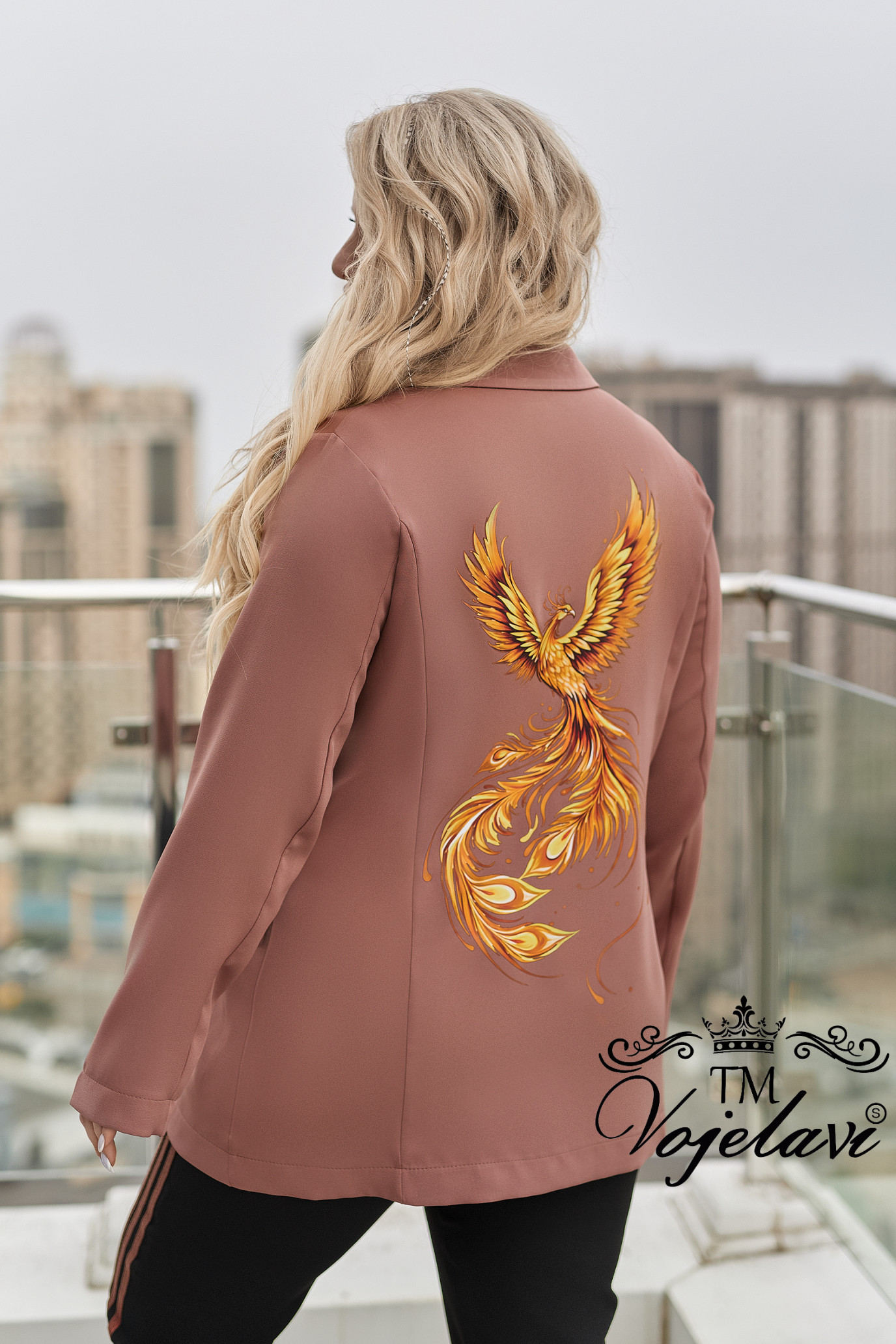 Розкішна апплікація по спинці у вигляді жар-птиці — справжній акцент, який привертає увагу та виглядає дорого.