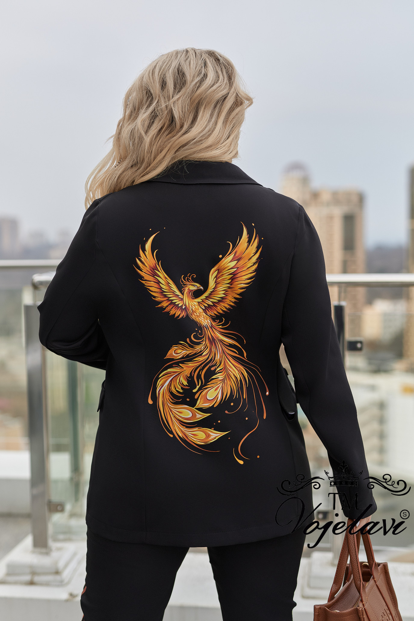 Розкішна апплікація по спинці у вигляді жар-птиці — справжній акцент, який привертає увагу та виглядає дорого.