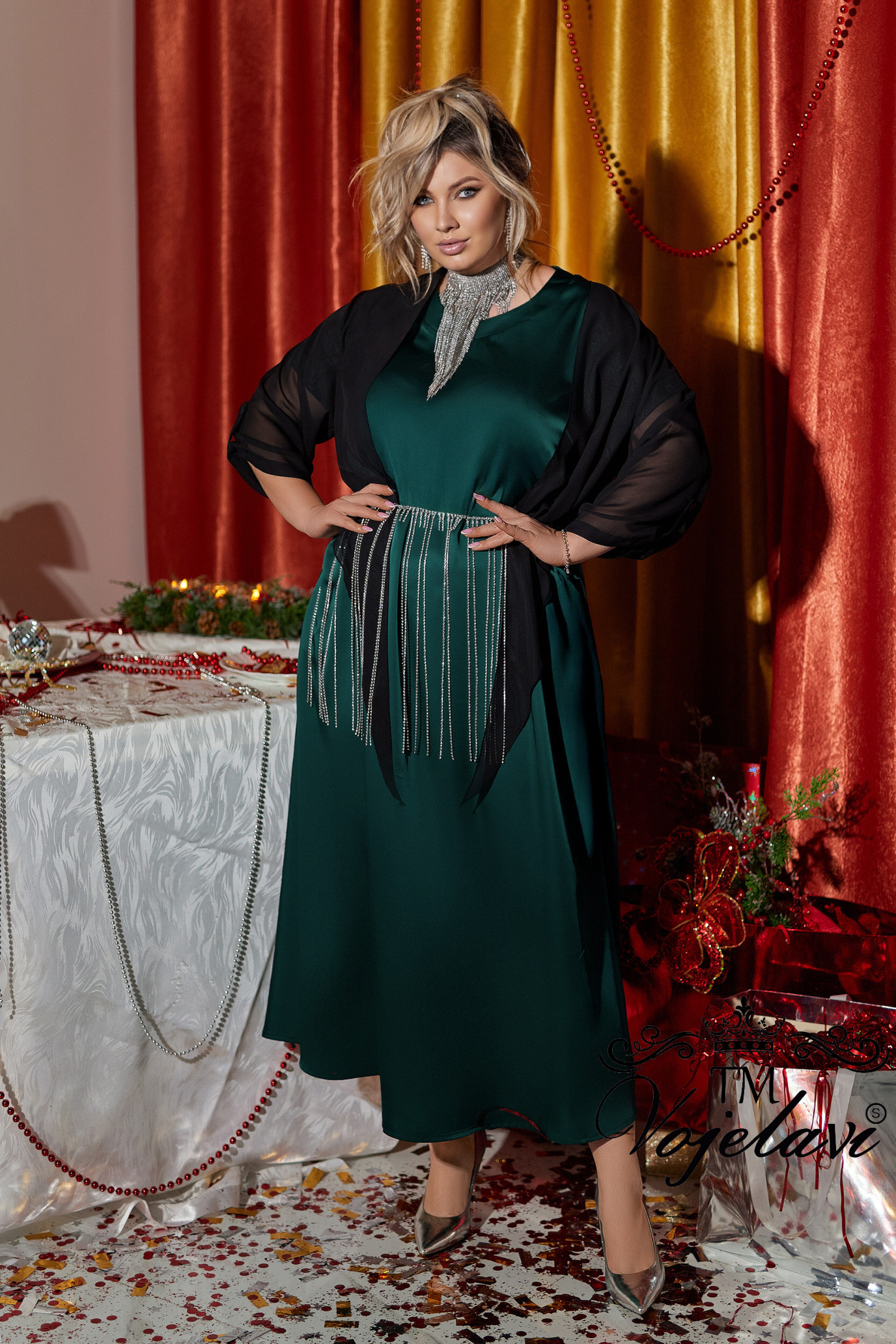 ✨ Комплект складається з розкішної сукні та легкої шифонової накидки — універсальний варіант для свят, виходів у ресторан та особливих подій.