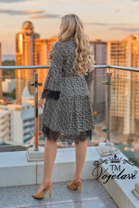 Жіночна сукня на ґудзиках з воланами та акцентом мережива— ідеальне поєднання класики та ніжного стилю.