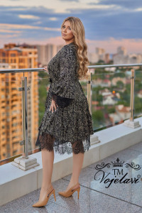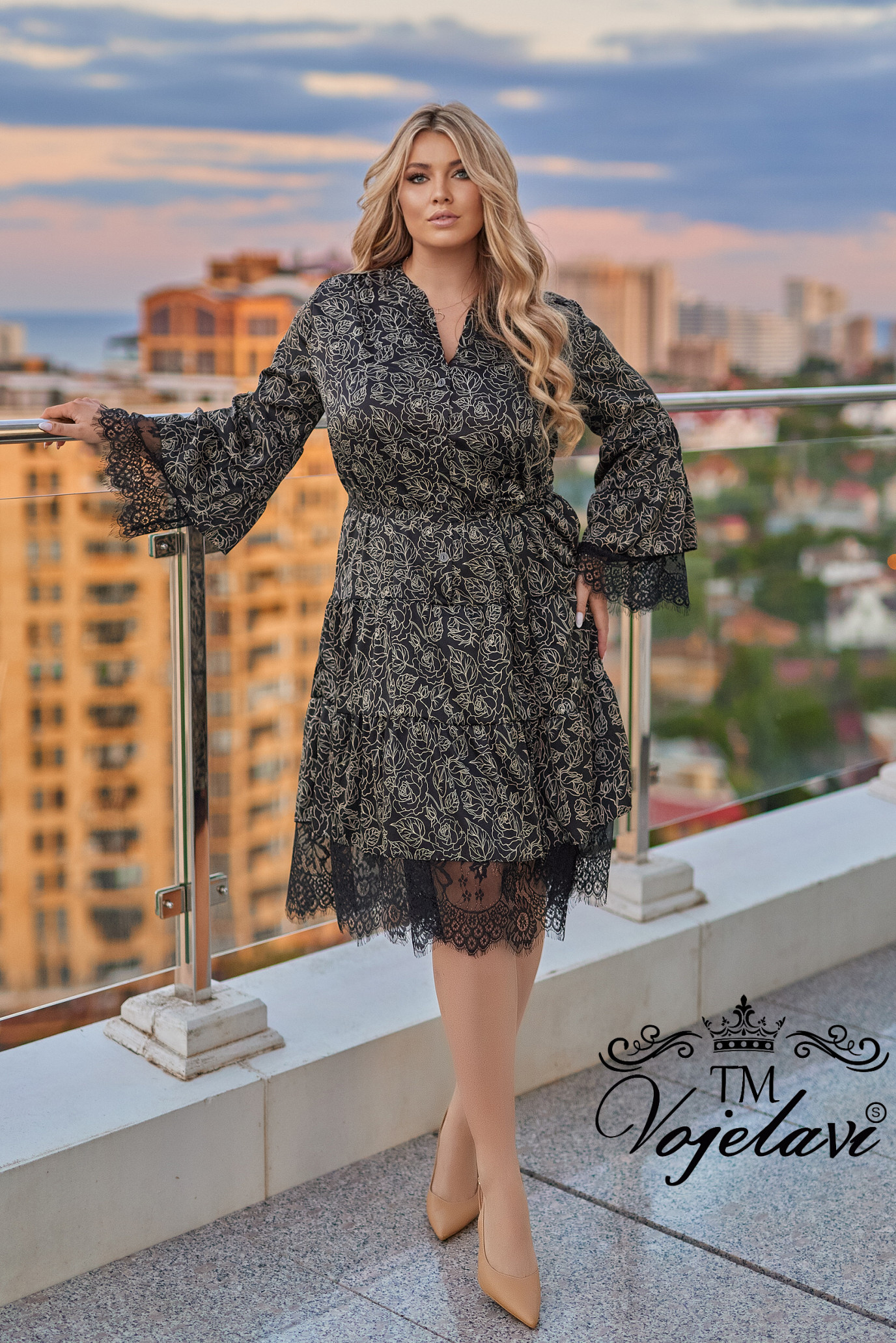 Жіночна сукня на ґудзиках з воланами та акцентом мережива— ідеальне поєднання класики та ніжного стилю.