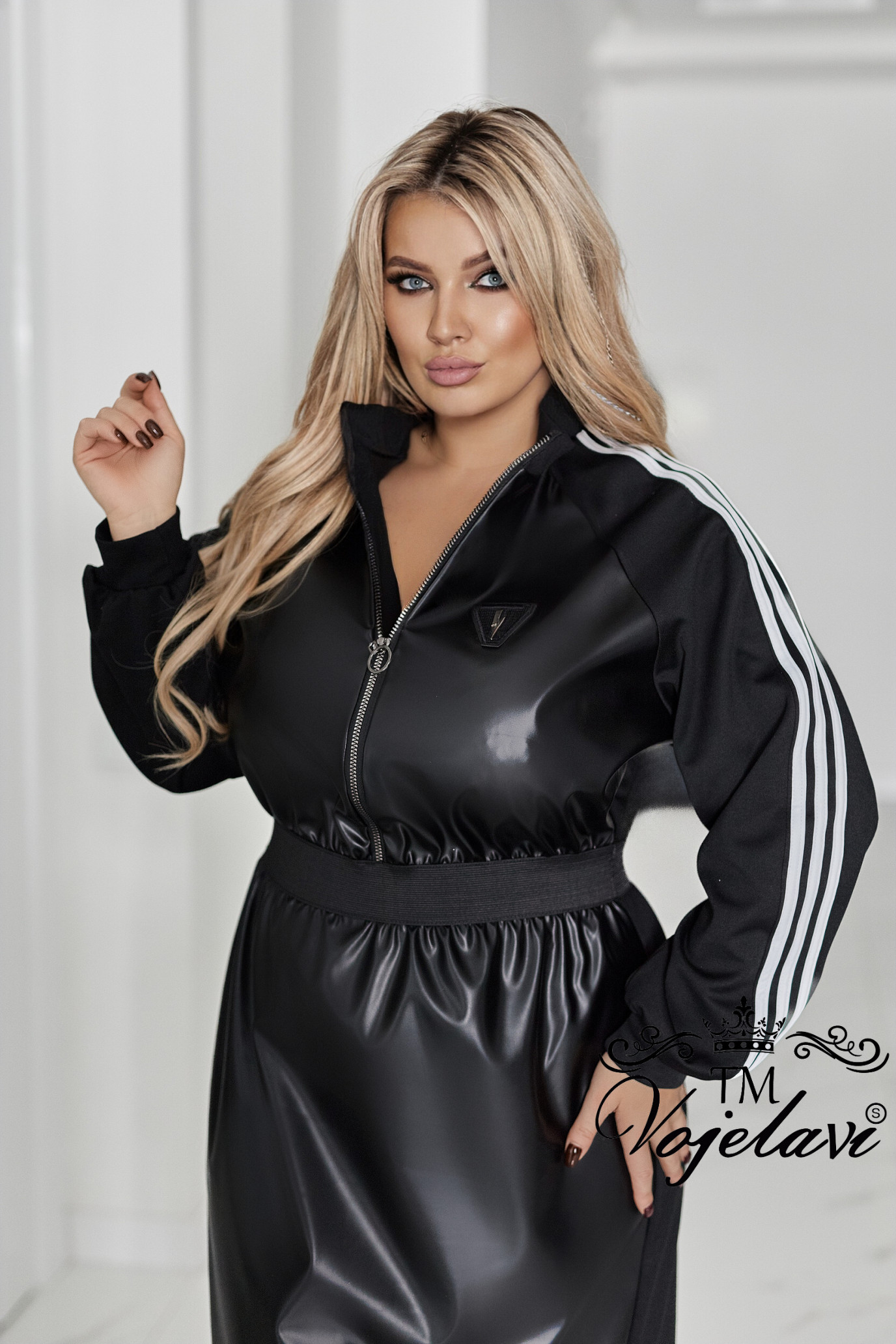 ■ Сукня у спортивному стилі з ефектом двох матеріалів.