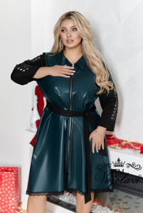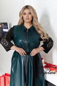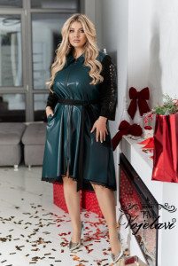 Тканина: Еко шкіра гарної якості + рукава та пояс з Італійського трикотажу + лазерна різка по тканині + стрази DMS + мереживо по низу сукні.