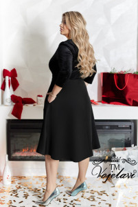 ■ Модель цільнокроєна, поєднує розкіш велюру-бархату з впаяною паєткою у верхній частині та костюмку діагональ у спідниці.